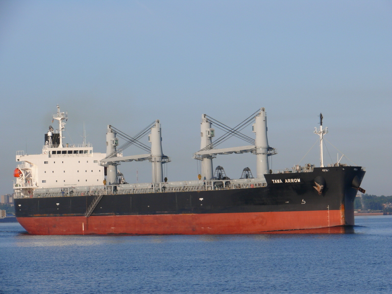 Llegó ayer la tarde, a la zona de fondeos (Antepuerto de Santa Cruz de Tenerife), sobre las 15:00 horas, procedente del puerto de Annaba (Argelia), después de una travesía de 5 días y 7 horas, el buque de carga-granelero TAWA ARROW, con código IMO: 9401879, construido en el Astillero de Compañía de construcción naval Oshima Ltd., en Saikai, (Japón), en junio del año 2008. Tiene un tamaño de 190 x 32,3 m, siendo su calado real de 12,4 m. Propulsión: (1) (1) x B Kawasaki Heavy Industries Ltd.| motor diésel| 6S50MC-C, con una potencia toral de 11.000 Kw a 110.0 r.p.m., que le mantiene a una velocidad media de 9,8 knots, llegando a alcanzar los 16 nudos.