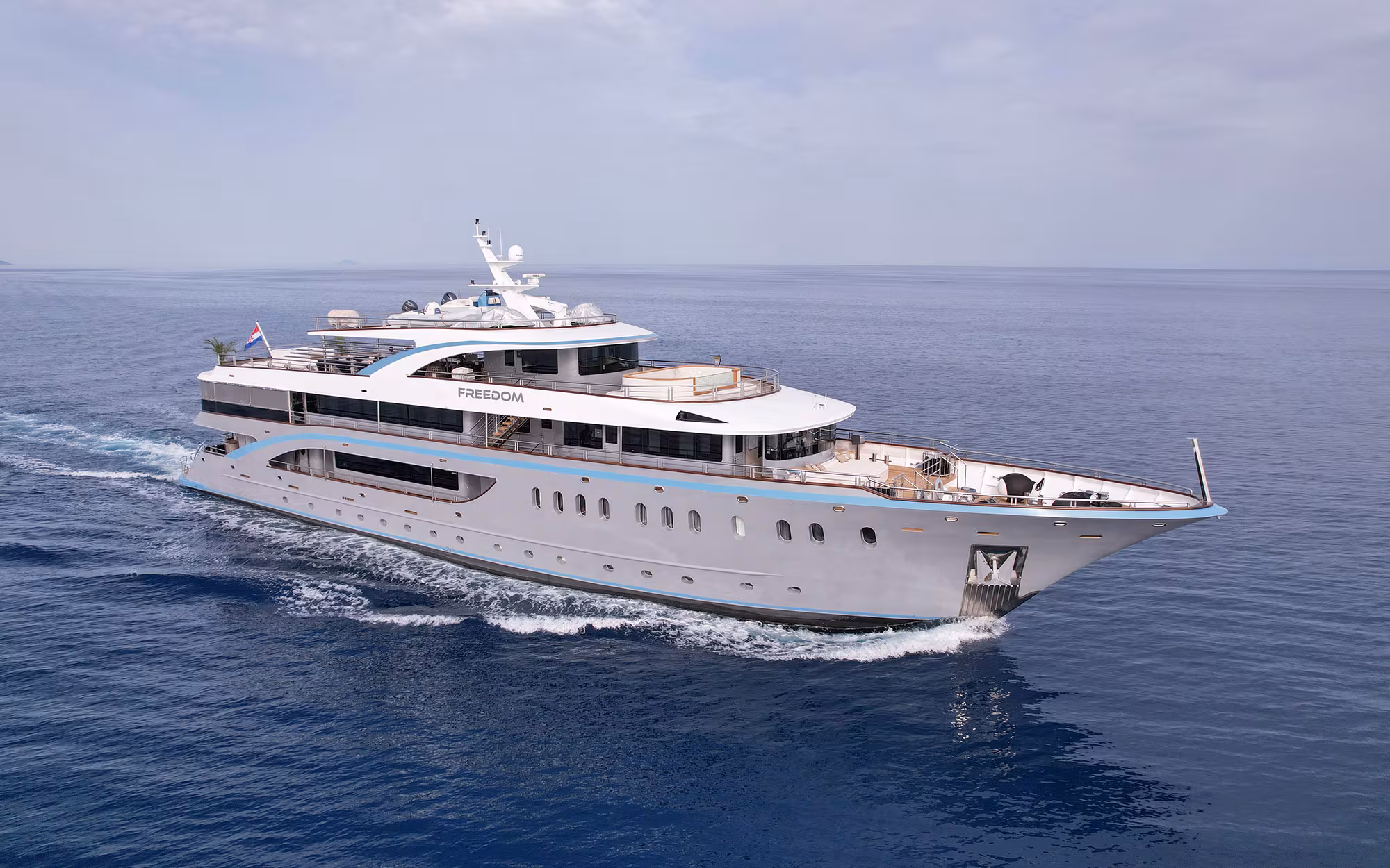 Llegó ayer por la mañana, sobre las 00:08 horas, a la dársena de Los Llanos de Santa Cruz de Tenerife), procedente de puerto de Gibraltar, después de una travesía de 2 días y 10 horas, el yate FREEDOM, con código IMO: 8975067, construido en Astillero de construcción Benetti, en Viareggio (Italia), siendo el diseño de interiores, la Officina de John Munford, y el de interiores, Stefano Natucci, en el año 2000. Tiene un tamaño de 69 x 12,5 m, siendo su calado 3,8 m. Propulsión: (2) x motores diesel Caterpillar MTU (12V 396 TE 94), con una potencia de 1.800 Kw. cada uno, que le mantiene a una velocidad media de12 knots, llegando a alcanzar los 14,1 nudos.