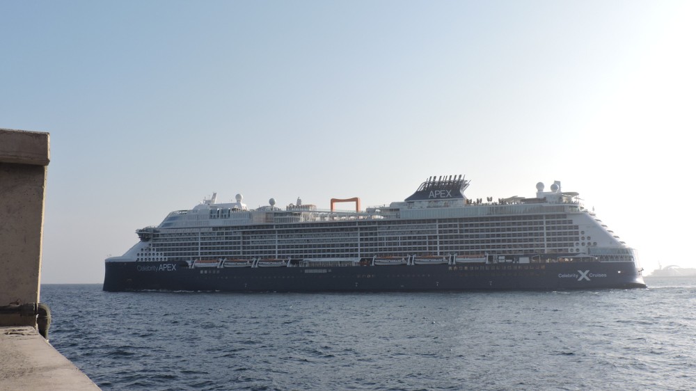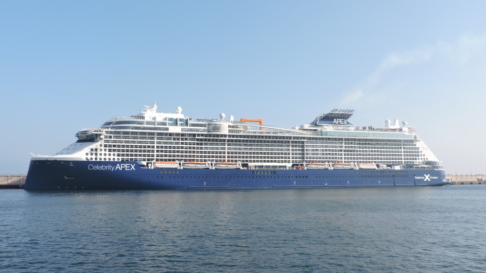 Llegó esta mañana, sobre las 07:15 horas, al muelle Sur de la dársena de Anaga, procedente del puerto de La Luz (Gran Canaria-España), después de una travesía de 9 horas y 46 minutos, el crucero CELEBRITY APEX, con código IMO 9838383, construido en los en los los astilleros franceses Chantiers de l´Atlantique, de St. Nazaire-Nantes (Francia), en marzo de 2020 Diseño vanguardista realizado por los arquitectos y diseñadores de interiores más importantes del mundo. Tiene un tamaño de 306 x 50 m, siendo su calado de 8,5 m. Propulsión: (5) x Wärtsilä con una potencia total de 53.760 Kw. (*), que le mantiene una velocidad media de 18 knots, llegando a alcanzar los 22,7 nudos.