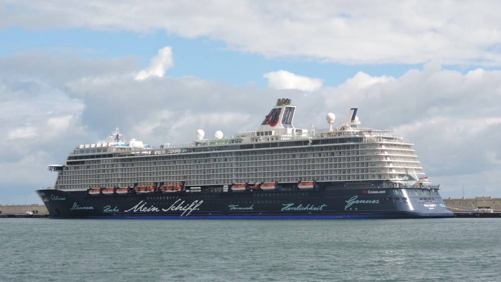 En el Descanso Dominical: Buscar la Separata número 417 en OTROS PUERTOS: “NUESTROS PUERTOS CANARIOS”, de Santa Cruz de Tenerife, mi Puerto. Llegó esta mañana, sobre las 08:50 horas al muelle Sur de la dársena de Anaga de Santa Cruz de Tenerife, procedente del puerto de Gibraltar (Gran Canaria-España), después de una travesía de 1 día y 18 horas, el crucero BMEIN SCHIFF, con código IMO: 9678408, construido en el astillero STX Finland, en Turku (Finlandia), en abril del año 2015. Tiene un tamaño de 293,2 x 35,8 m, siendo su calado real de 8,1 m. Lleva una capacidad de 2.506 pasajeros y una tripulación de 1.030 personas, mantiene una velocidad media de 8,1 knots, llegando a alcanzar los 21,5 nudos y unas 99.526 toneladas de registro bruto. Navega con bandera de Malta (MT), para Tui Cruises - Hamburgo, Alemania) y la señal de llamada es 9HA3515. Tiene pensado partir esta tarde, sobre las 20.00 horas, al puerto de Praia (Cabo Verde), después de realizar diferentes excursiones por la isla y actividades por la ciudad, así como el embarque de cruceristas.