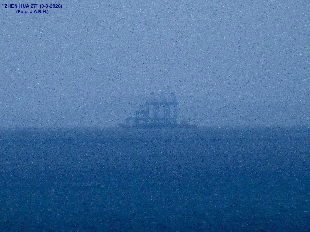 EL BUQUE "ZHEN HUA 27", PREPARADO PARA EL TRANSPORTE DE CARGAS PESADAS, PROCEDENTE DE SHANGHAI, HA CRUZADO HOY EL "CST TENERIFE-GRAN CANARIA" RUMBO A ROTTERDAM: Dada la baja velocidad a la que navega, entre 2,5 y 6,9 nudos, ya que transporta sobre cubierta tres grúas grandes de puerto, más una mediana y otra más pequeña, como se puede apreciar en alguna de las fotos, ha permanecido navegando casi once horas por el mencionado Canal de Separación de Tráfico (CST), a donde entró sobre las 07:00 horas, abandonándolo a las 17:55 horas.