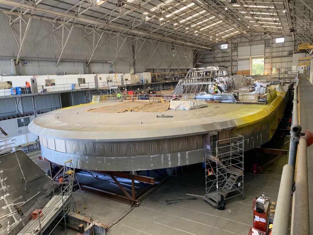 AUSTAL Y FRED. OLSEN, S.A. desarrollan sus dos trimaranes de última generación con las medidas medioambientales más avanzadas del mercado. Comenzando con el proceso de diseño, el equipo de I+D del ASTILLERO AUSTAL ha utilizado estructuras optimizadas con el objetivo de que sean lo más ligeras posibles, lo que supone una importante reducción en la potencia que requieren los barcos. Esto, comparado con los buques de acero, da como resultado una significativa disminución de sus emisiones. Asimismo, los barcos de aluminio no requieren de la misma protección anticorrosión que los de acero, lo que elimina la posibilidad de que esos materiales contaminantes lleguen al medio marino.