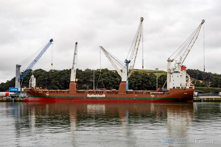 El HUMBERGRACHT tiene pensado partir esta tarde, sobre las 17:00 horas con destino al puerto de Three Rivers-Trois Riveres, (Canadá) después de descargar 825 unidades de bobinas de papel y pasta. El barco es operado por Hansa Heavy Lift - Hamburgo - Alemania, que también es su gerente, siendo su propietario, Spliethoff's Bevrachtingskantoor Bv. - Ámsterdam - Países Bajos. Las fotografías son de archivo, de la página web del carguero, de shipspotting.com. y de VesselFinder, repartidas las tres últimas, con anteriores nombres.
