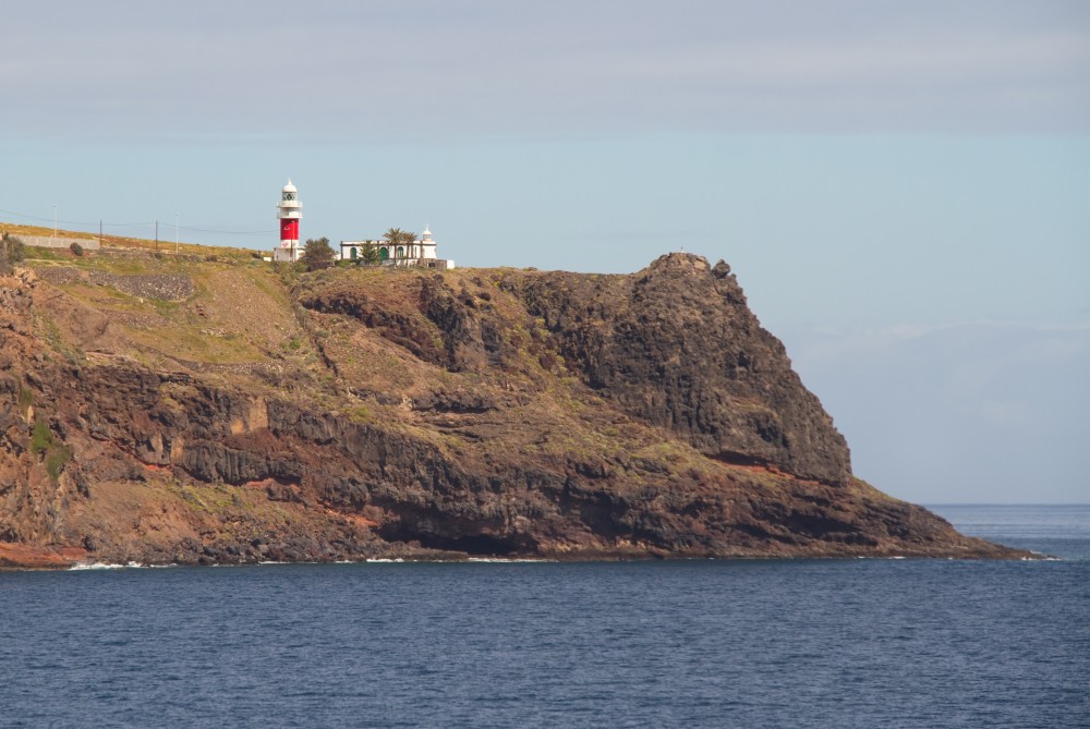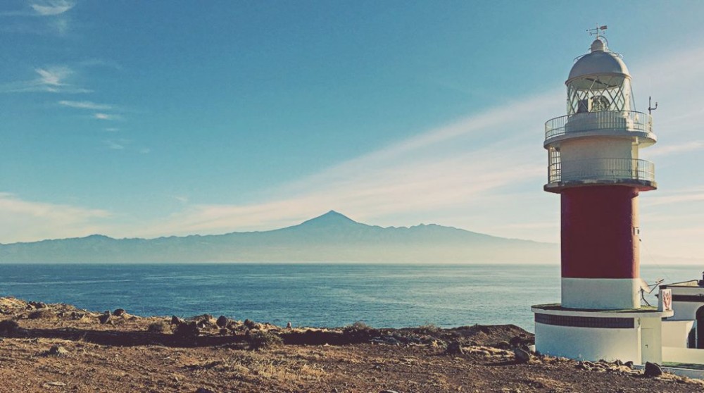 MÁS ALLÁ DEL FARO DE SAN CRISTÓBAL: Del mismo faro sale una pista de tierra que parece abandonada y transcurre sobre el borde de los acantilados, en dirección al helipuerto de San Sebastián de La Gomera, donde aterrizan y despegan varios helicópteros durante la mañana y, la cercana instalación militar de la Unidad de Apoyo a la Proyección (UAPRO) Cristóbal Colón. Al alejarnos podemos ver la antigua torre, todavía más pequeña que la actual, mostrando la excelente ubicación escogida con una orientación perfecta para controlar el tráfico marítimo al sur de la isla y el acceso a su capital. El cómodo paseo nos permite admirar la fuerza del océano desde las alturas, además de reconocer algunas cuevas sugerentes para los piratas que frecuentaban las islas, hipótesis que confirmamos al divisar la tranquila escala de un velero al abrigo de una de las ensenadas, ofreciendo protección en un mar que hoy se encuentra algo movido.
