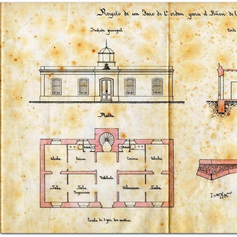Linterna: La Maquinista Valenciana (LMV). Catadióptrica, giratoria de 175 mm de distancia focal.