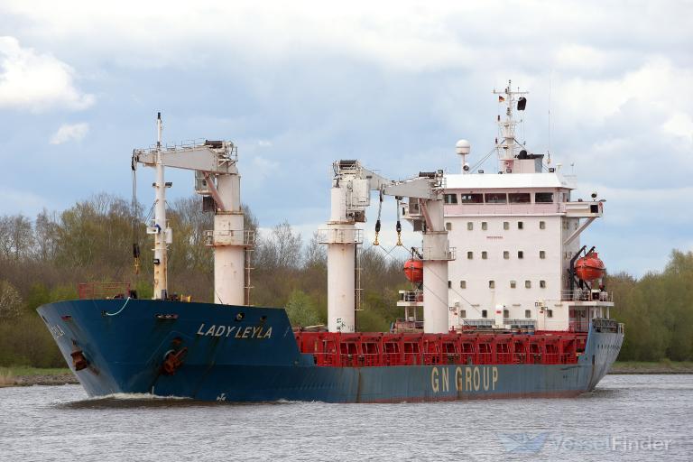 Tiene una tripulación de 14 personas. Fue botado en junio del año 2001, con el nombre de HOPA, hasta junio de 2014, que pasó a llamarse, LADY AZKA y desde noviembre del año 2015, lleva su actual nombre de LADY LEYLA. Las fotografías son de archivo, de la página web del carguero de VesselFinder y de Shipspotting.com, siendo las dos últimas, con su nombre de salida de HOPA. Tiene pensado partir, la noche del próximo martes día 14, sobre las 23:00 horas, con destino al puerto de La Luz, (Gran Canaria-España) después de descargar 4.935 toneladas de cereales y su harina.