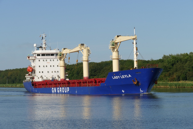 Llegó la noche del pasado jueves día 9, sobre las 22:50 horas, a la dársena del Este, de Santa Cruz de Tenerife, procedente del puerto de Nantes, (Francia), después de una travesía de 6 días y 22 horas, el carguero LADY LEYLA, con código IMO: 9106986, construido en los Astillero Selah (Selah Makina Sanayi ve Ticaret AS.) , en Estambul (Turquía), en el año 2001. Tiene un tamaño de 134,5 x 18 m, siendo su calado real de 8 m. Propulsión: (1) x MAN B&W 6L35 MC, motor diésel con una potencia total de 2.999 Kw., que le mantiene una velocidad media de 7,3 knots, llegando a alcanzar los 10,7 nudos.