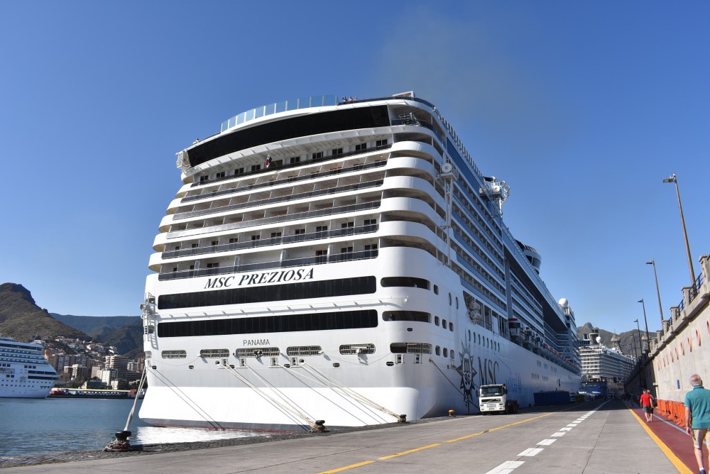 Llegó hoy por la mañana, sobre las 07:00 horas, al muelle Sur de la dársena de Anaga, procedente del puerto de Funchal (Madeira-Portugal), después de una travesía de 14 horas y 38 minutos, el crucero MSC PREZIOSA, con código IMO: 9595321, construido en los en los astilleros de STX France S.A., en Saint Nazarie (Francia), en el año 2012. Tiene un tamaño de 333,3 x 28 m, siendo su calado de 8.6 m. Propulsión: (2) Wärtsilä 16V46C + (3) Wärtsilä 12V46C y una potencia de 43.600 Kw., que le mantiene a una velocidad media de 16,6 knots, llegando a alcanzar los 27,6 nudos.