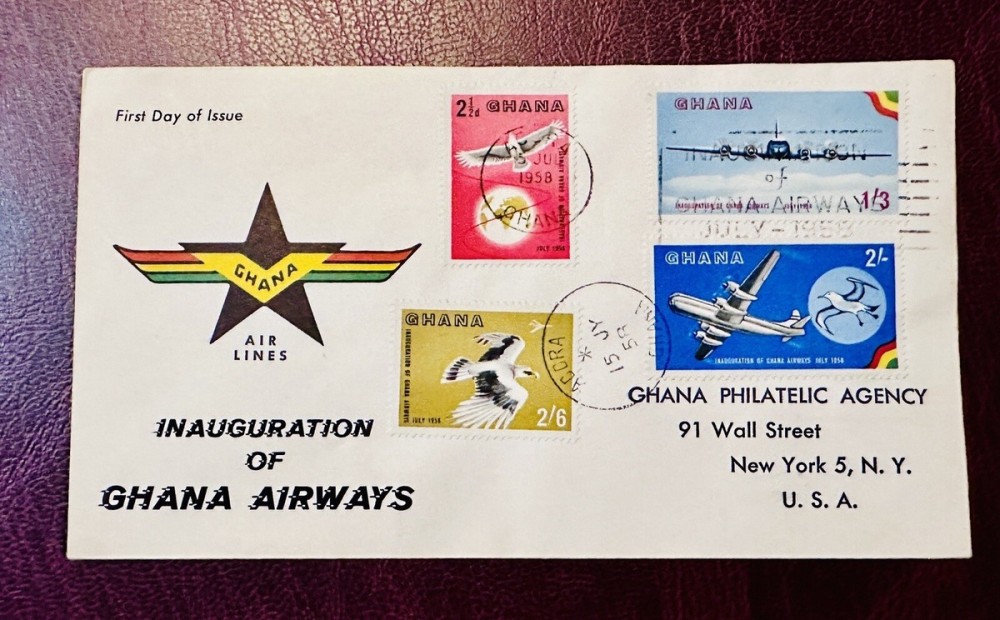 SOBRE PRIMER DÍA: INAUGURACIÓN LÍNEAS AÉREAS DE GHANA. 15-7-1958