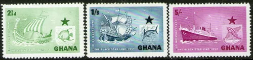 Bloque de tres: HISTORIA DE LA NAVEGACIÓN. 2 ½ GHS., 1/3 GHS. y 5 GHS.