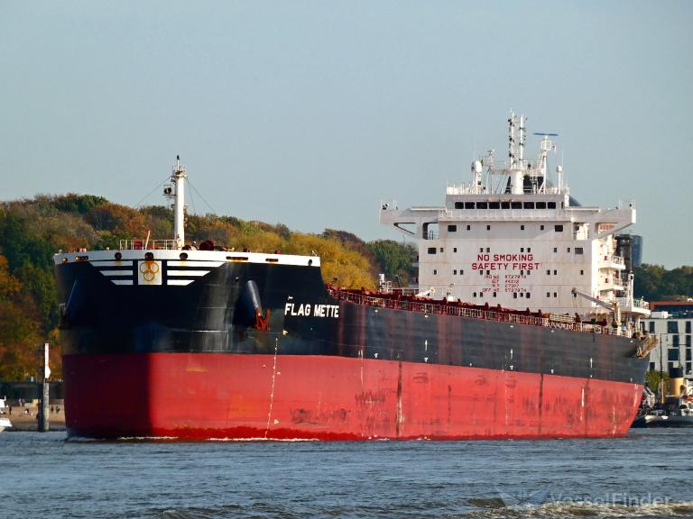 El FLAG METTE navega con bandera de Malta (MT), la señal de llamada es 9HA4175. Es operado por Golden Union Enterprises SA - Atenas - Grecia, siendo su gerente, Corporación de Transporte Marítimo U-Ming - Atenas - Grecia y su propietario, Navigator Spirit SA. - Atenas - Grecia. Las fotografías son de archivo, obtenidas de la página web del granelero, de VesselFinder y de Shipspotting.com. Lleva una tripulación con 16 personas y tiene 44.012 toneladas de registro bruto.