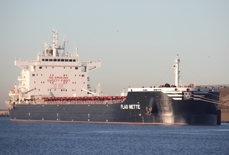 El FLAG METTE, es un buque bul Carrier de carga general multipropósito - carga pesada, de acero reforzado para cargas pesada; de construcción de doble casco, con una capacidad en bodega al 98 % de 81.200 metros cúbicos de graneles sólidos. Piensa partir hoy por la mañana, sobre las 08:30 horas, con destino al puerto de Montoir de Bretagne (Francia), después de una parada técnica de avituallamiento y el repostaje de 50 toneladas de gasoil y 635 metros cúbicos de fueloil.