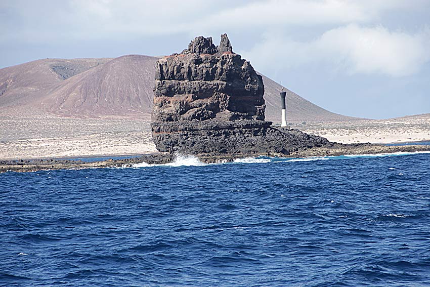 La mar está revuelta con frecuencia, y tiene corrientes peligrosas. Aquí está siempre presente este FARO DE ORZOLA, pequeño y sugerente, acogedor y coqueto. Suele haber poca gente, y en la playa cercana deja su sombra perderse en el horizonte. Es un rincón que le gusta, sobre todo, al público de la propia isla y muchos curiosos turistas. En esta zona confluyen el Risco de Famara, La Graciosa y los islotes de Alegranza, Montaña Clara, Roque del Este y Roque del Oeste cercanos, que junto con el fondo marino del Atlántico forman el PARQUE NATURAL DEL ARCHIPIÉLAGO CHINIJO, un espacio de un incalculable valor medioambiental.