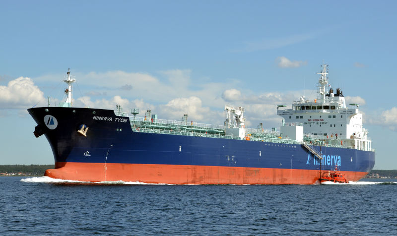 Llegó ayer por la noche, sobre las 23:58 horas, a la dársena del Este de Santa Cruz de Tenerife, procedente del puerto de La Luz, (Gran Canaria-España), después de una travesía de 5 horas y 52 minutos, el buque cisterna MINERVA TYCHI, con código IMO: 9723291, construido en el astillero de Astillero Hyundai Mipo Co Ltd., en Ulsan (Corea del Sur), en febrero del año 2016. Tiene un tamaño de 184 x 27,5 m, siendo su calado real de 11,9 m Propulsión: (1) x Hyundai/MAN-B&W 6S50ME-B, motor de combustión de 2 tiempos y 6 cilindros, 500 x 2.214 mm, con una potencia total de 7.270 Kw/9.884 Hp a 99.000 rpm., que le mantiene a una velocidad media de 9,1 knots, llegando a alcanzar los 17,5 nudos.