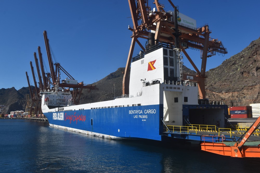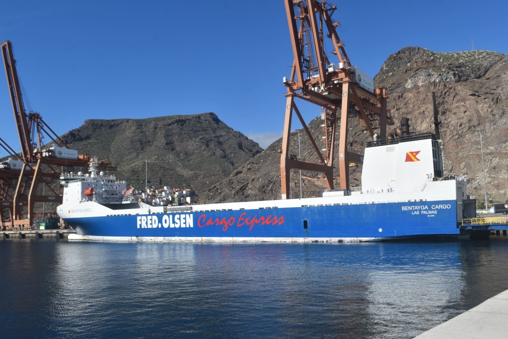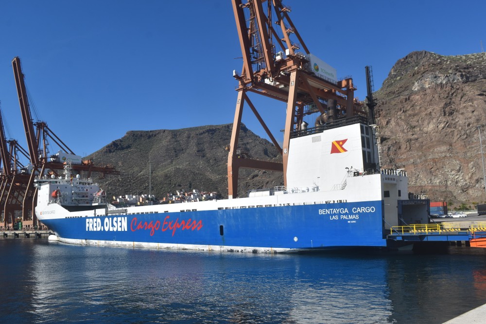 Llegó la mañana del pasado miércoles día 24, sobre las 03:25 horas, al muelle de Contenedores de la dársena del Este de Santa Cruz de Tenerife, procedente del puerto de La Luz (Gran Canaria-España), después de una travesía de 3 horas y 12 minutos, el buque Ro-Ro BENTAYGA CARGO, código IMO: 9207883, construido en los Astilleros Jinling Shipyard de Nanjing, en Nanjing (República Popular de China), en el año 2000. Tiene un tamaño de 162,6 x 20,7 m, siendo su calado de 6,9 m. Propulsión: (1) x MAN B & W modelo motor Augsburg 12V48/60, con una potencia total de 12.600 Kw/17.130 Hp., que le mantiene una velocidad media de 13,5 knots, llegando a alcanzar los 18,9 nudos.