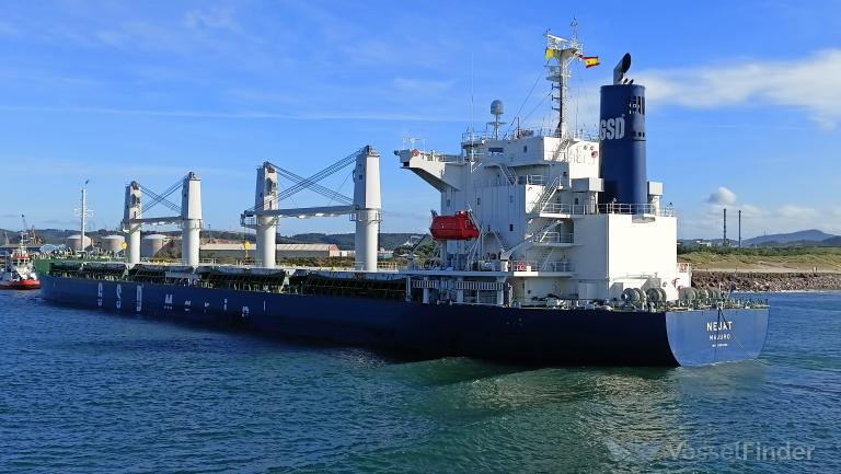 Navega el NEJAT con bandera de Las Islas Marshall (MH), la señal de llamada es V7A6194. El barco es operado por GSD Marín - Estambul - Turquía, siendo su gerente, Gestión de Flota Limitada - Estambul - Turquía y su Propietario, Nejat Marítima Limitada - Estambul - Turquía. Tiene 23.232 toneladas de registro bruto y lleva una tripulación de 15 personas.