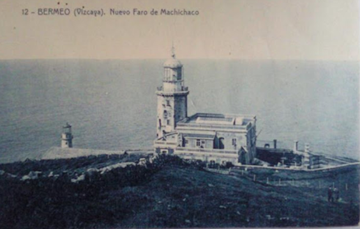 EL PRIMER FARO DE MATXITXAKO (FARU ZARRA): FARO que solo se conserva en pie la torre. Se inauguró el 21 de agsto de 1852. El ingeniero encargado de las obras fue D. Félix Uhagon y el aparejador de las mismas, D. Juan Martínez Aparicio y en aquel tiempo costó 132.531 reales el edificio, más 234.796 reales el aparato óptico. La torre es de piedra sillar procedente de las canteras de Durango. El edificio contiguo a la torre, del que solo se conserva su forma rectangular en el suelo, disponía de habitaciones y almacenes. La torre disponía de una preciosa linterna que ya no está, y alcanzaba la altura de 14 metros, a 79 metros sobre el nivel del mar. La clase de luz era fija blanca con destellos de 4 en 4 segundos, alcanzando la 23 millas, el de mayor alcance en la época. Era atendido por tres torreros y se mantuvo en activo hasta diciembre de 1909.