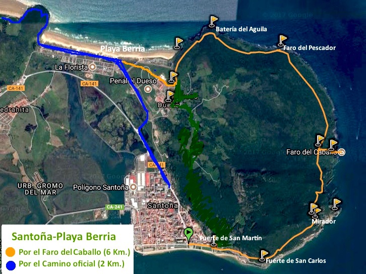 ¿CÓMO LLEGAR AL FARO DEL PESCADOR? Solo puedes acceder al FARO a pie. y tendrás que andar un buen rato, o también en bicicleta. Tienes dos opciones: Visitarlo, como comentamos, la playa de Berria. Un camino asfaltado (90% cuesta arriba). Más o menos tardarás entre 40-45 minutos por trayecto. O visitarlo después de estar el FARO DEL CABALLO, con sus correspondientes escalones. Para ello tienes que hacer la ruta circular al monte Buciero, siempre recomendable. Desde la playa de Berria es recomendable aparcar, donde está el cementerio de Santoña, y de ahí ya comenzar la subida. Por este camino totalmente asfaltado, incluso se puede llevar sillita de niños, o ir en bicicleta, ojo siempre entender que
