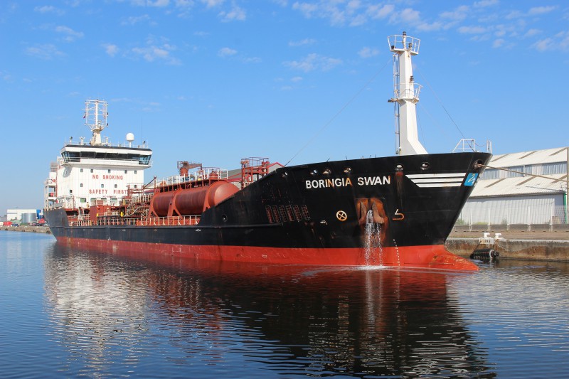 Tiene el BORINGIA SWAN 4.812 toneladas de registro bruto, navega bajo bandera de Dinamarca (DK), su identificativo de llamada es OWNY2 y, lleva una tripulación máxima con alojamiento para 18 personas. Tiene pensado partir del muelle de la Hondura, este mediodía, sobre las 12:30 horas, con dirección al puerto de Salinetas (Gran Canaria-España), después de descargar 5.000 toneladas de diferentes productos petrolíferos.