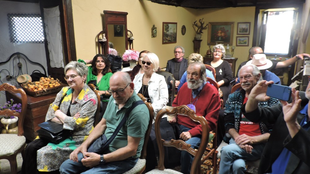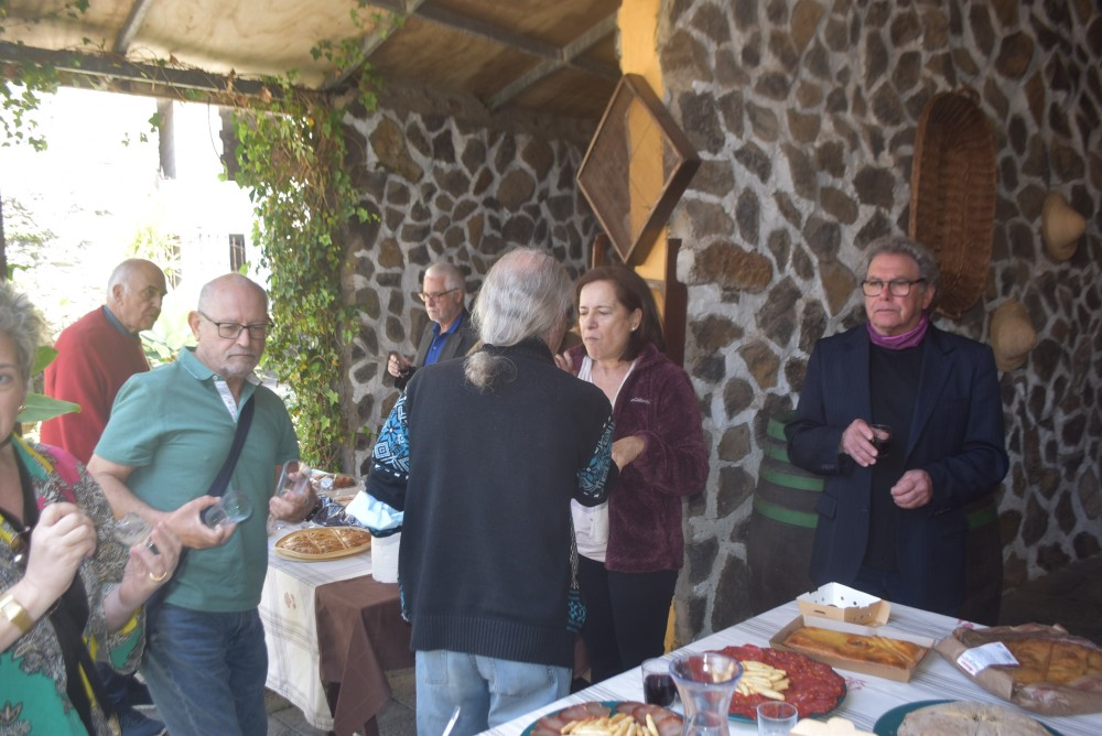 Finalizadas las proyecciones, se pasó a un ratito de magnífica tertulia y hasta alguno, nos deleitó con algunas pinceladas del auténtico folklore canario. La propietaria del “MOLINO DE ANA” y organizadora de estos encuentros mensuales, Dª. Ana María Hernández Martín, dio las gracias a los asistentes y muy en especial al conferenciante, D. Isidoro Sánchez García, indicando a los presentes, que el próximo encuentro será el próximo día 20 con la presentación del libro “MOLINO DE ANA”. Finalmente pasamos al patio, donde estaba preparado un “almuerzo-picoteo”, traído por algunos de los asistentes a la charla y por la propia Ana Hernández. Solo me resta comentarles que pasamos una rato muy agradable, además de aprender y, el compromiso de acercar el Puerto de Santa Cruz de Tenerife al “MOLINO DE ANA” en la Orotava.