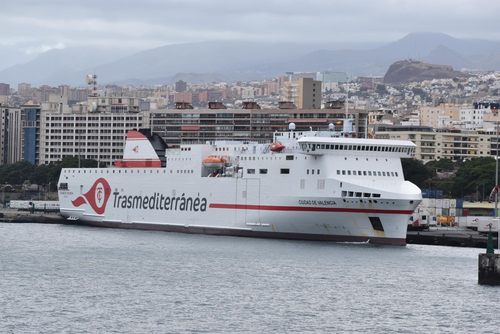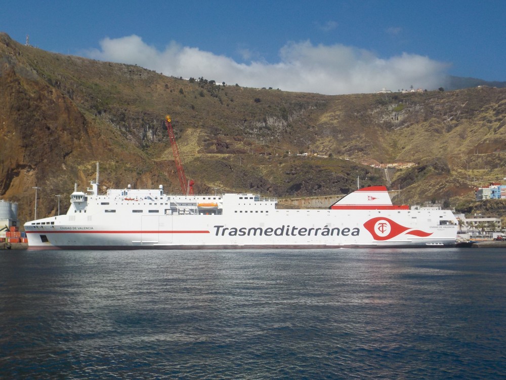 Debido a la mayor potencia propulsora del buque “CIUDAD DE VALENCIA”, permite acortar la duración del viaje en tres horas, de modo que los miércoles a las 16:30 horas estará en el puerto de Arrecife (Lanzarote); a las 20 horas en Puerto del Rosario; los jueves a las 02 horas en Las Palmas de Gran Canaria y a las 08:30 horas en Santa Cruz de Tenerife. Ese mismo día, a las 21:30 horas llegará al puerto de Santa Cruz de La Palma. El viaje de retorno comienza los viernes a las 16 horas en Santa Cruz de La Palma. A las 21:30 horas está en Santa Cruz de Tenerife y las 06 horas del sábado en Las Palmas de Gran Canaria; a las 17 horas en Puerto del Rosario (Fuerteventura) y a las 21 horas en Arrecife (Lanzarote). A las 01 horas del domingo prosigue su viaje de regreso a Cádiz, donde arriba los lunes a las 07 horas.