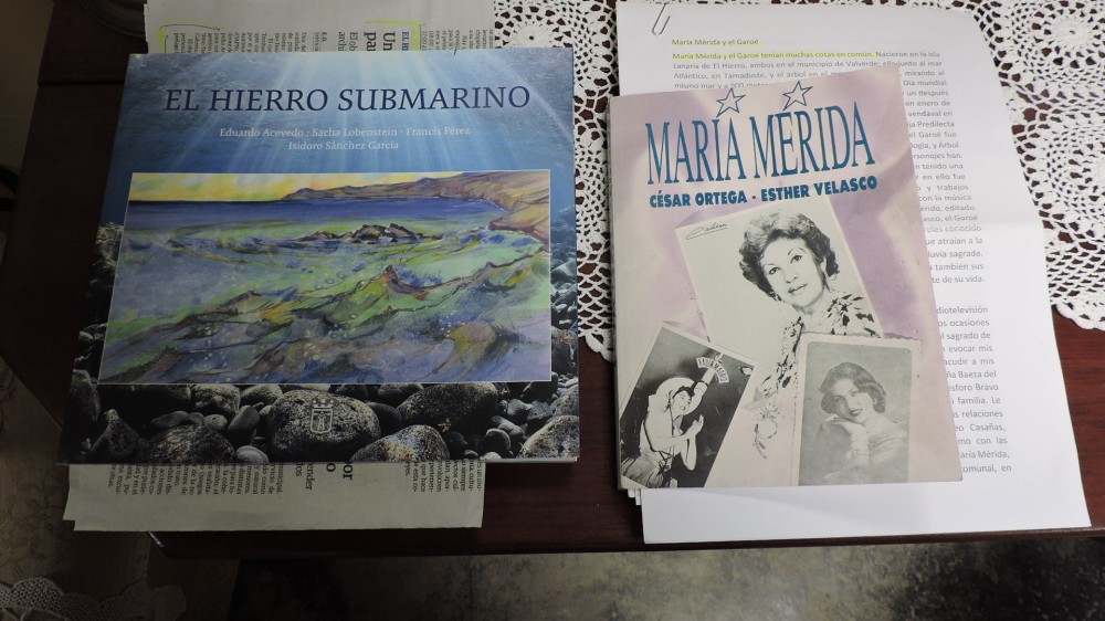 Así mismo con las autoridades herreñas y personajes singulares de Ferro, como MARÍA MÉRIDA, a quien conocí en la Fiesta de los Faroles en la Dehesa comunal, en homenaje a la Virgen de los Reyes. La entrevista resultó amena por cuanto el milagro del agua en El Hierro, materializada en el GAROÉ, me llenó de gratos recuerdos. De manera especial cuando en 1982 escribí en EL Día el artículo Bosque y Agua en El Hierro, al igual que en 2007 el libro GAROÉ, que me presentó en sociedad el biólogo D. Antonio Machado en el portuense Hotel Garoé. Conté las experiencias que hicimos desde el Icona, en las cumbres herreñas, recordando al pastor Bartolo en una sabina de la Dehesa, a D. Zósimo Hernández en la Cruz de los Reyes, a D. Tadeo Casañas en Ventejis, al ingeniero Sr. Sánchez Recio en Tajusara, al ingeniero de montes D. Luis Ceballos en Valverde en busca del Árbol santo y a D. Tomás Padrón, promotor más tarde de la Ruta del Agua alrededor del GAROÉ.