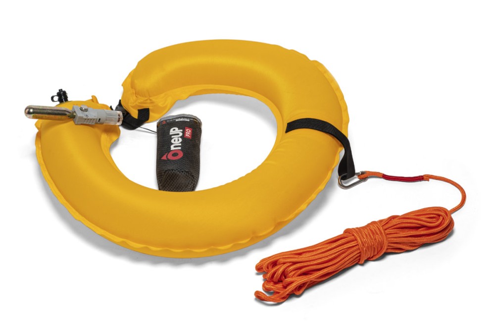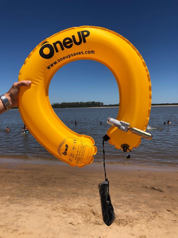 El dispositivo ‘ONEUP’ es un elemento creado y patentado por una sociedad 100 % canaria. Se infla automáticamente al entrar en contacto con el agua y su mecanismo es de fácil manejo, además de tener un peso de 390 gramos, una longitud de 18 centímetros, con un cabo flotante de 25 metros de color naranja, dos mosquetones para su enganche, pegatinas reflectantes y una funda impermeable, por lo que su practicidad y fácil manejo, puede convertirlo en determinante a la hora de salvar vidas en las costas del Archipiélago.