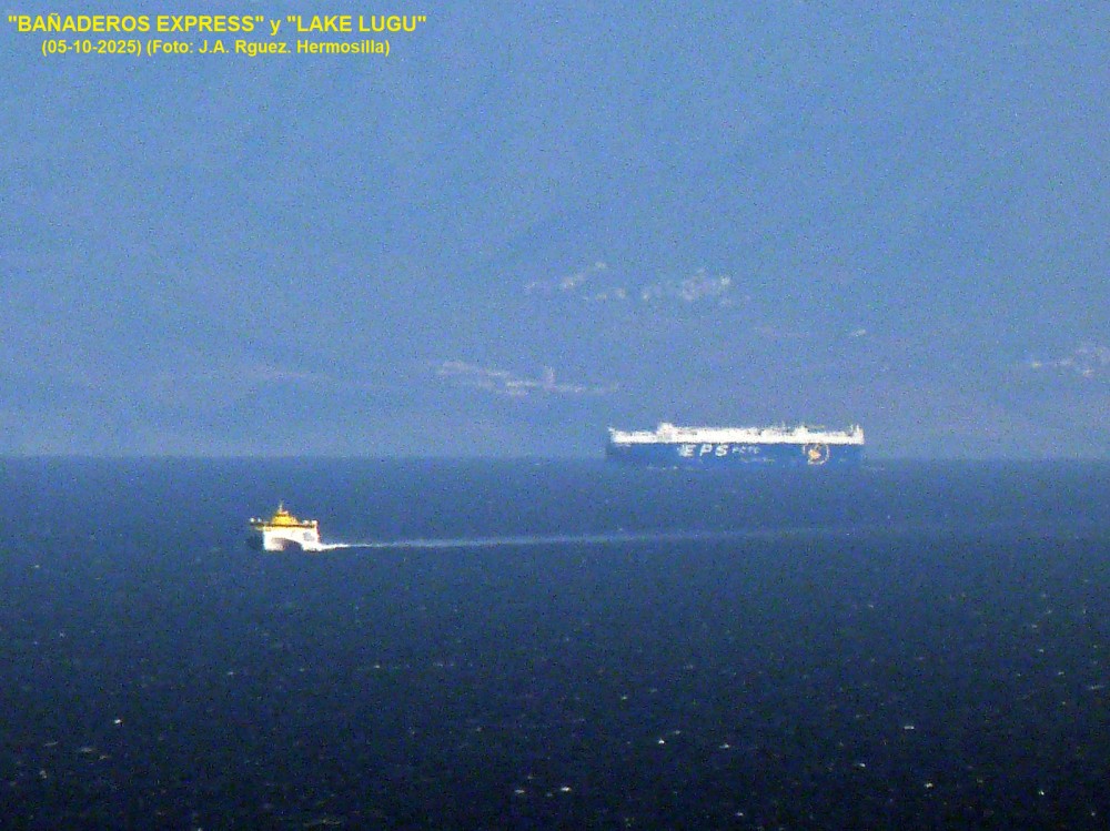 En las fotos se puede ver al catamarán "BAÑADEROS EXPRESS", de Fred Olsen Express, que se cruzó en su rumbo, haciendo el trayecto Agaete-Santa Cruz de Tenerife. Abanderado en Liberia y con indicativo 5LEK8, fue construido en 2024 en los astilleros China Merchants Jinling Shipyard, de Jiangsu (China), con número de grada JLZ8210419.