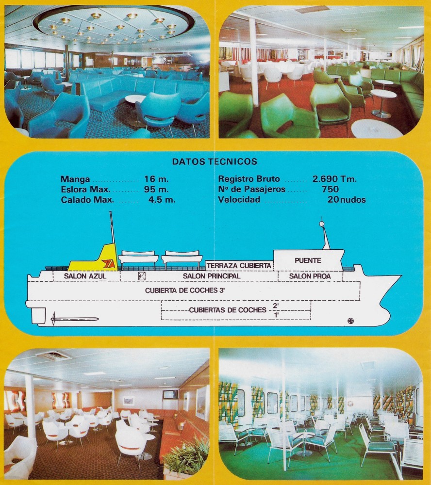 EL SEGUNDO BARCO DE LA NAVIERA FERRY GOMERA QUE LUCIO EN SUS AMURAS EL NOMBRE DE "BENCHIJIGUA" (IMO 7206392) (1980-1994): Construido en 1972 en los astilleros Ulstein, de Ulsteinvik (Noruega), con nº. de grada 64, para la naviera Fred Olsen, de la misma nacionalidad, salió a navegar con el nombre de "BONANZA", con bandera igualmente noruega e indicativo LFUJ.