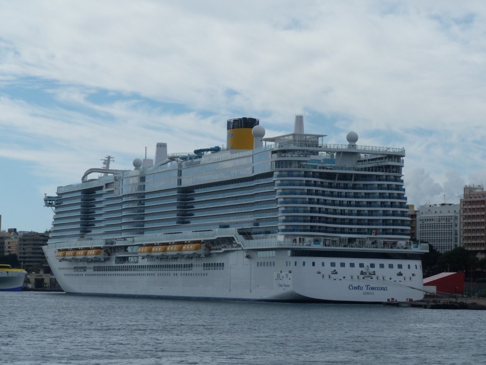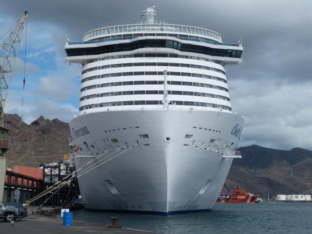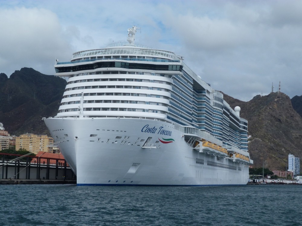 NUEVA ESCALA DEL MEGACRUCERO ITALIANO "COSTA TOSCANA" (IMO 9781891) EN SANTA CRUZ DE TENERIFE: Procedente de Cádiz, ha quedado atracado a las 08:45 horas, en el muelle de Ribera de la dársena de Anega, teniendo previsto zarpar para Las Palmas de Gran Canaria a las 18:30 horas, aunque aún permanece en puerto.