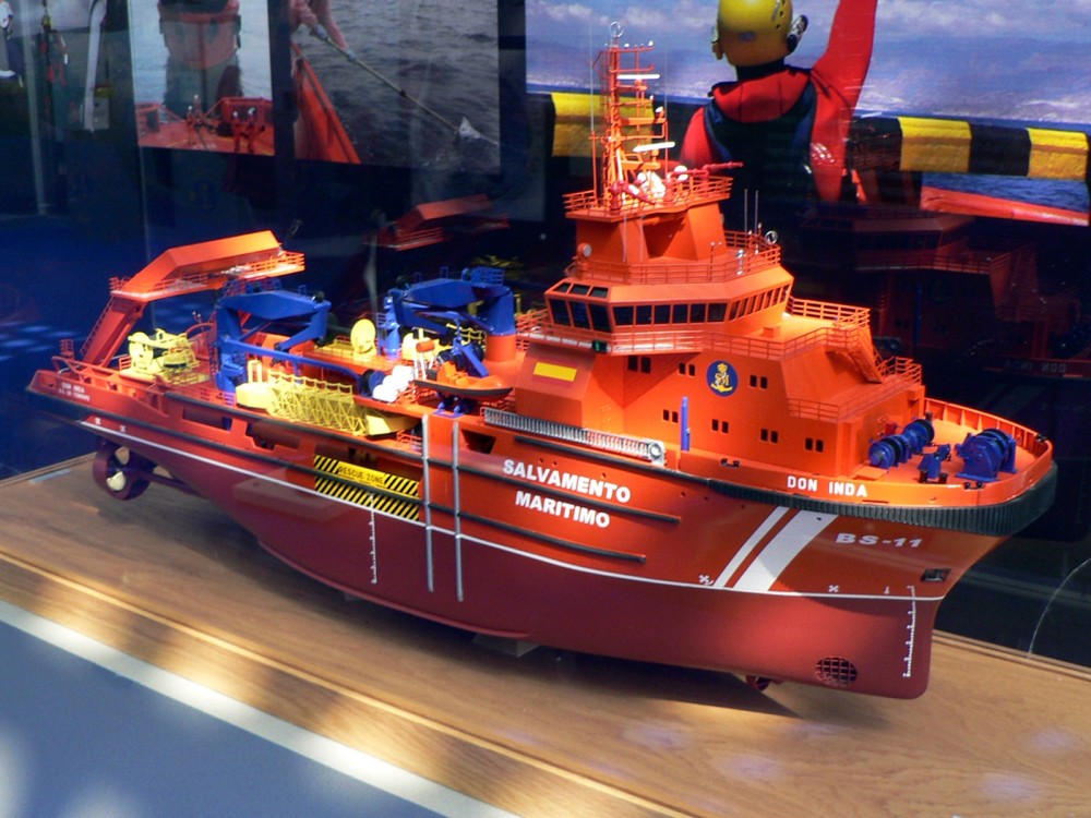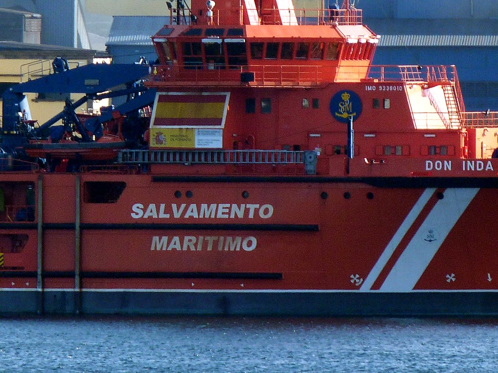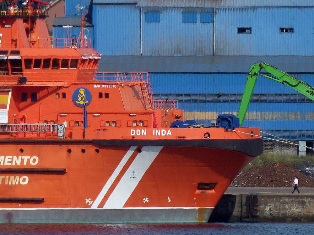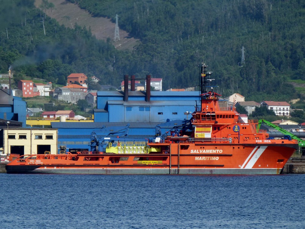 "DON INDA" (BS-11) (IMO 9338010) REMOLCADOR POLIVALENTE DE LUCHA CONTRA LA CONTAMINACION, SALVAMENTO Y RESCATE, DEL SERVICIO DE SALVAMENTO MARITIMO ESPAÑOL, FOTOGRAFIADO EN BRENS (LA CORUÑA) EL DIA 5 DE OCTUBRE DE 2014.