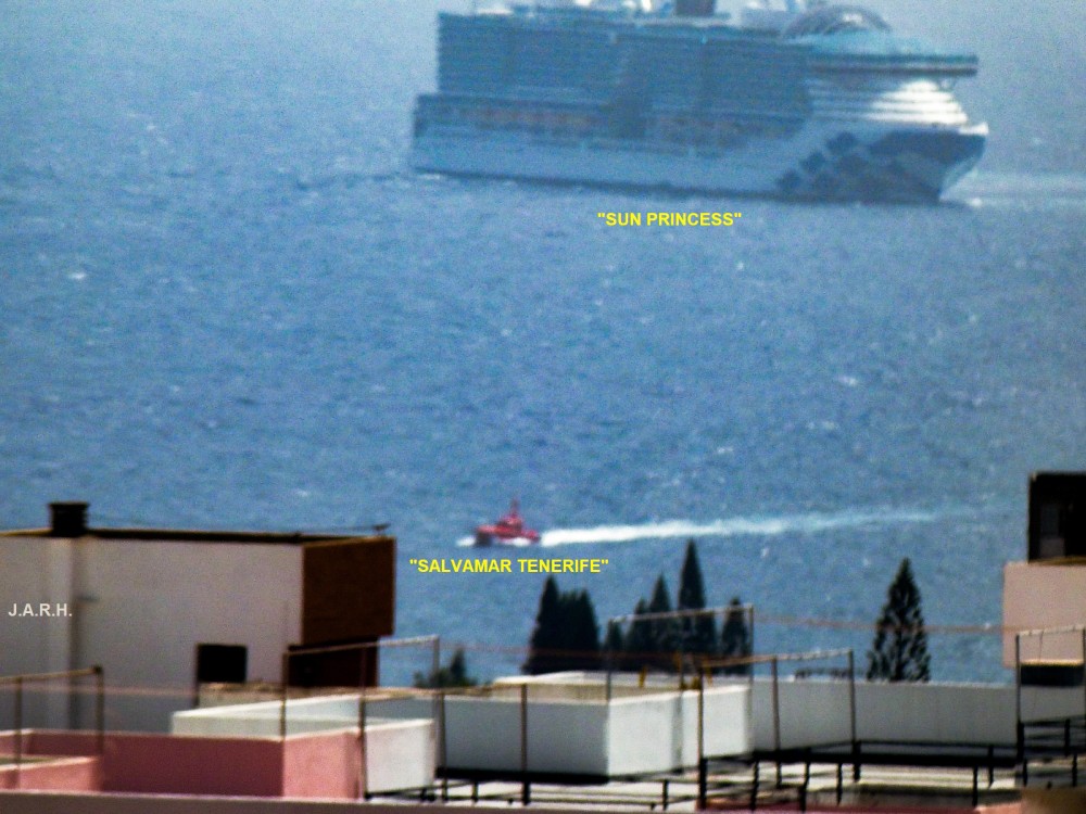 APROXIMACION A LA COSTA DE TENERIFE DEL CRUCERO "SUN PRINCESS" (IMO 9863118), CON EL FIN DE EVACUAR POR VIA MARITIMA A TRES PASAJEROS, QUE HAN SIDO POSTERIORMENTE TRASLADADOS A CENTROS HOSPITALARIOS DE LA CAPITAL. LA OPERACION HA SIDO LLEVADA A CABO POR LA EMBARCACIÓN "SALVAMAR TENERIFE", DEL SERVICIO DE SALVAMENTO MARITIMO.