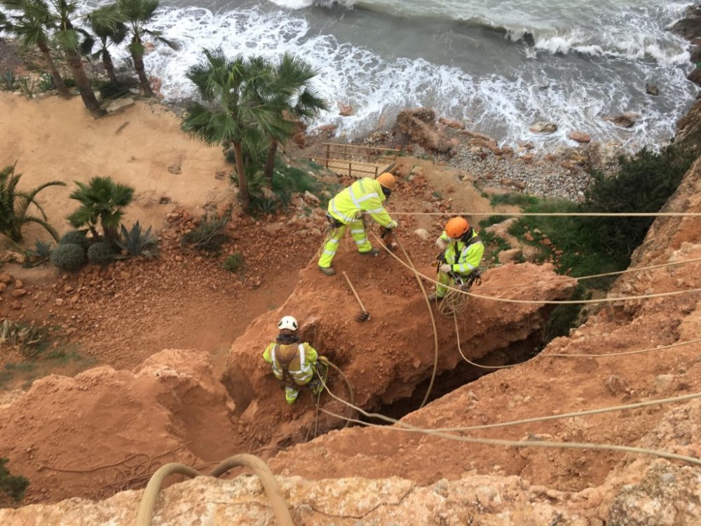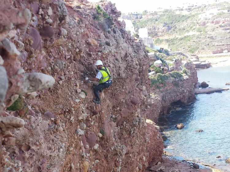 Los trabajos consistirán en el saneamiento de piedras y rocas sueltas en los riscos con peligro de desprendimiento mediante medios manuales y mecánicos con trabajos verticales. En los trabajos está incluida la limpieza de la zona afectada y del terreno después del desprendimiento controlado. Asimismo, se pondrá malla protectora y bulones de anclaje para la estabilización general del talud.