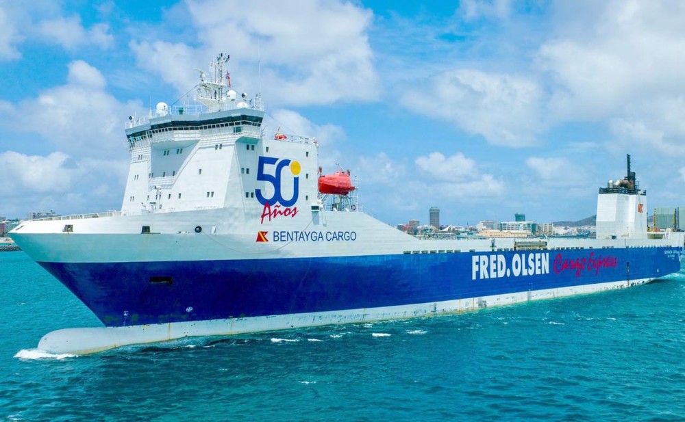 El nuevo buque de tipo RORO de Fred. Olsen Cargo Express, el BAHÍA CARGO, comienza hoy a conectar las islas de la provincia de Las Palmas y Tenerife. Su incorporación forma parte de la inversión realizada por la compañía para reforzar su servicio de transporte de mercancías con dos nuevos buques especializados, garantizando así el abastecimiento de Canarias y una mayor disponibilidad de espacio para sus clientes. Con este refuerzo, la empresa consolida su capacidad para ofrecer un servicio estable y global, diseñado para satisfacer las crecientes necesidades del sector logístico en las islas. El Bahía Cargo se suma así a la labor que su buque gemelo, BENTAYGA CARGO, viene realizando desde el mes de mayo entre Gran Canaria, Fuerteventura y Lanzarote, complementando el circuito al unir estas islas con Tenerife de manera diaria.