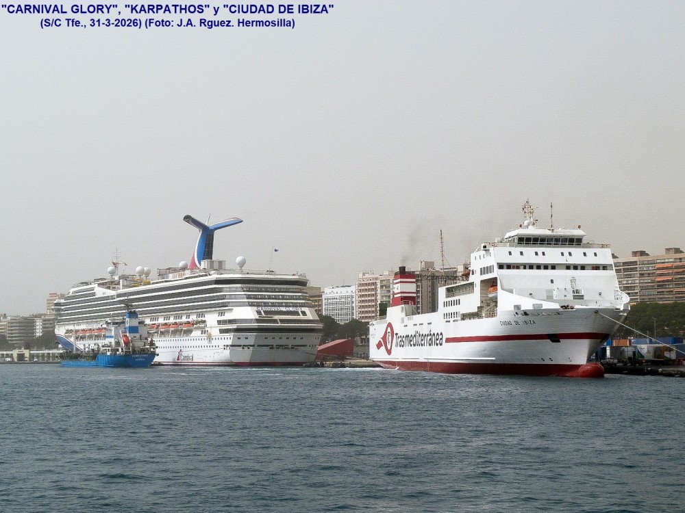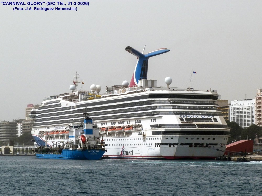 PRIMERA ESCALA DEL CRUCERO “CARNIVAL GLORY” (IMO 9198367), EN EL PUERTO DE SANTA CRUZ DE TENERIFE: Procedente de Las Palmas de Gran Canaria, ha quedado atracado en el muelle Ribera a las 06:55 horas.