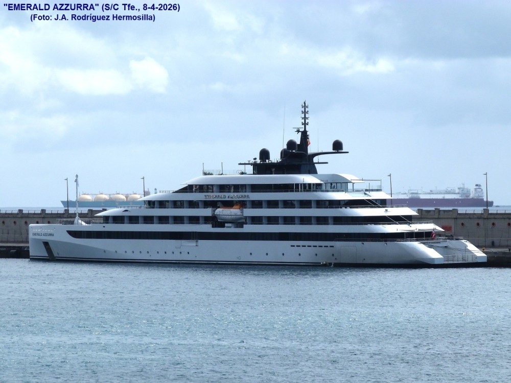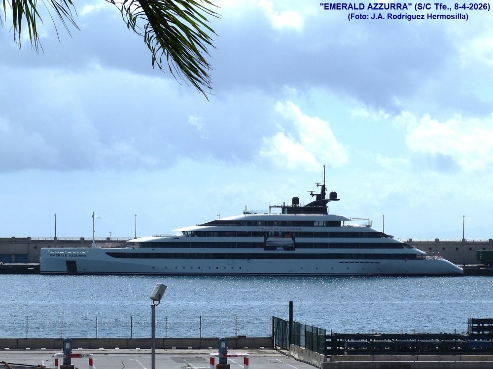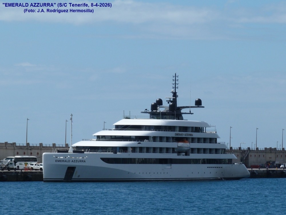 PRIMERA ESCALA EN SANTA CRUZ DE TENERIFE DEL MEGAYATE DE LUJO "EMERALD AZZURRA" (IMO 9903504), DEDICADO A CRUCEROS DE TURISMO: Procedente de San Juan de Puerto Rico, llegó ayer a primera hora de la tarde, habiendo zarpado hoy sobre las 15:30 horas, rumbo a Arrecife de Lanzarote, para desde allí continuar un crucero con destino final Barcelona.