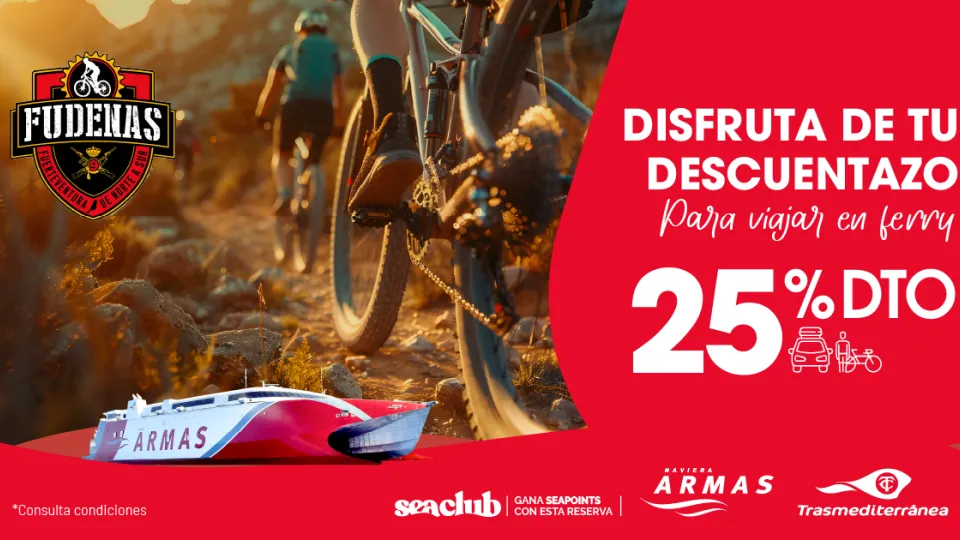 El GRUPO ARMAS TRASMEDITERRÁNEA reafirma su apoyo al deporte canario siendo transportista oficial de la 18ª EDICIÓN DE LA PRUEBA CICLISTA EN BICICLETA DE MONTAÑA FudeNaS (Fuerteventura de Norte a Sur), que se celebrará el 25 de octubre en Fuerteventura. La compañía ofrece un descuento del 25% en billetes a los participantes que se trasladen desde otras islas, tanto con vehículo como sin él, con el objetivo de facilitar la participación y garantizar que el evento sea accesible.