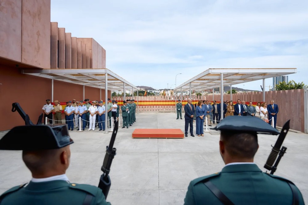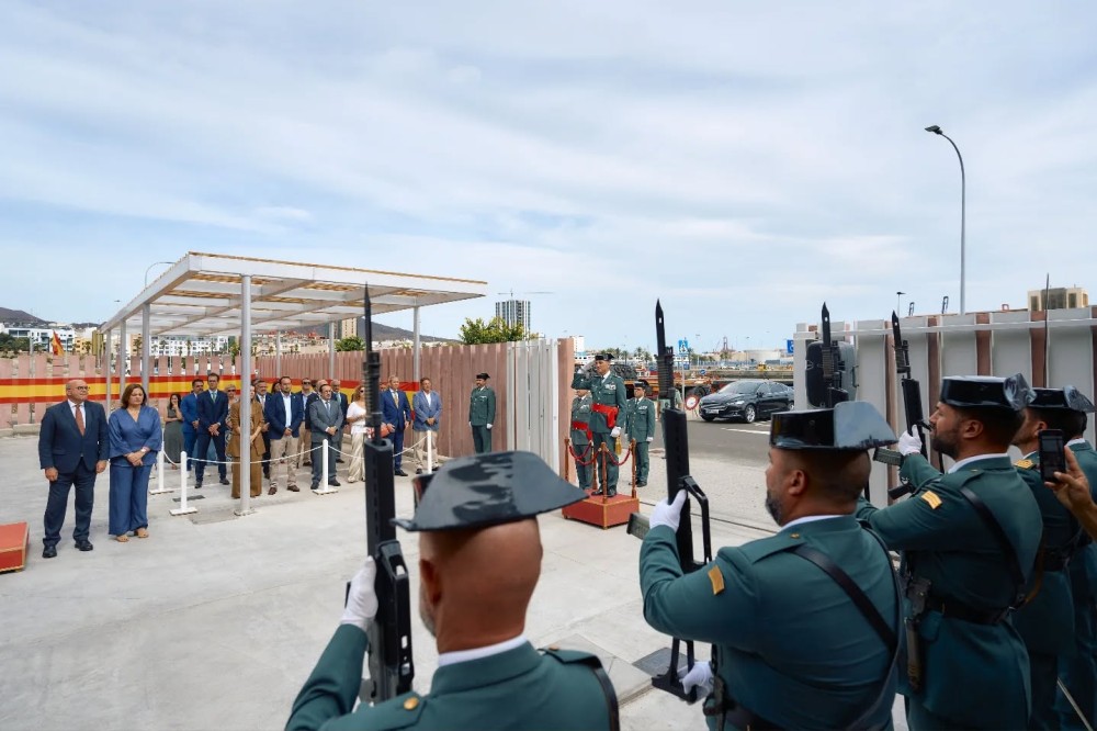 La GUARDIA CIVIL ha inaugurado hoy su nuevo edificio en el Puerto de Las Palmas, destinado a centralizar los servicios aduaneros, fiscales y de vigilancia. Con este proyecto, se da un paso más en la modernización de las infraestructuras portuarias y en la seguridad operativa del recinto. Al acto asistieron la presidenta de la Autoridad Portuaria, Dª. Beatriz Calzada; el director, D. Francisco Trujillo; el delegado del Gobierno en Canarias, D. Anselmo Pestana; y el teniente general jefe del Mando de Fronteras y Policía Marítima de la Guardia Civil, D. Manuel Navarrete, entre otras autoridades civiles y militares.